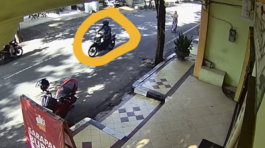 Dalam rekaman Camera Closed Circuit Television (CCTV) dari salah satu toko di jalan Ronggolawe itu terlihat jelas bahwa korban sedang berjalan kaki dengan kondisi jalanan yang cukup sepi. Tiba-tiba pelaku dengan mengendarai sepeda motor mendekat dari belakang korban kemudian langsung menarik tas yang di bawa korban.