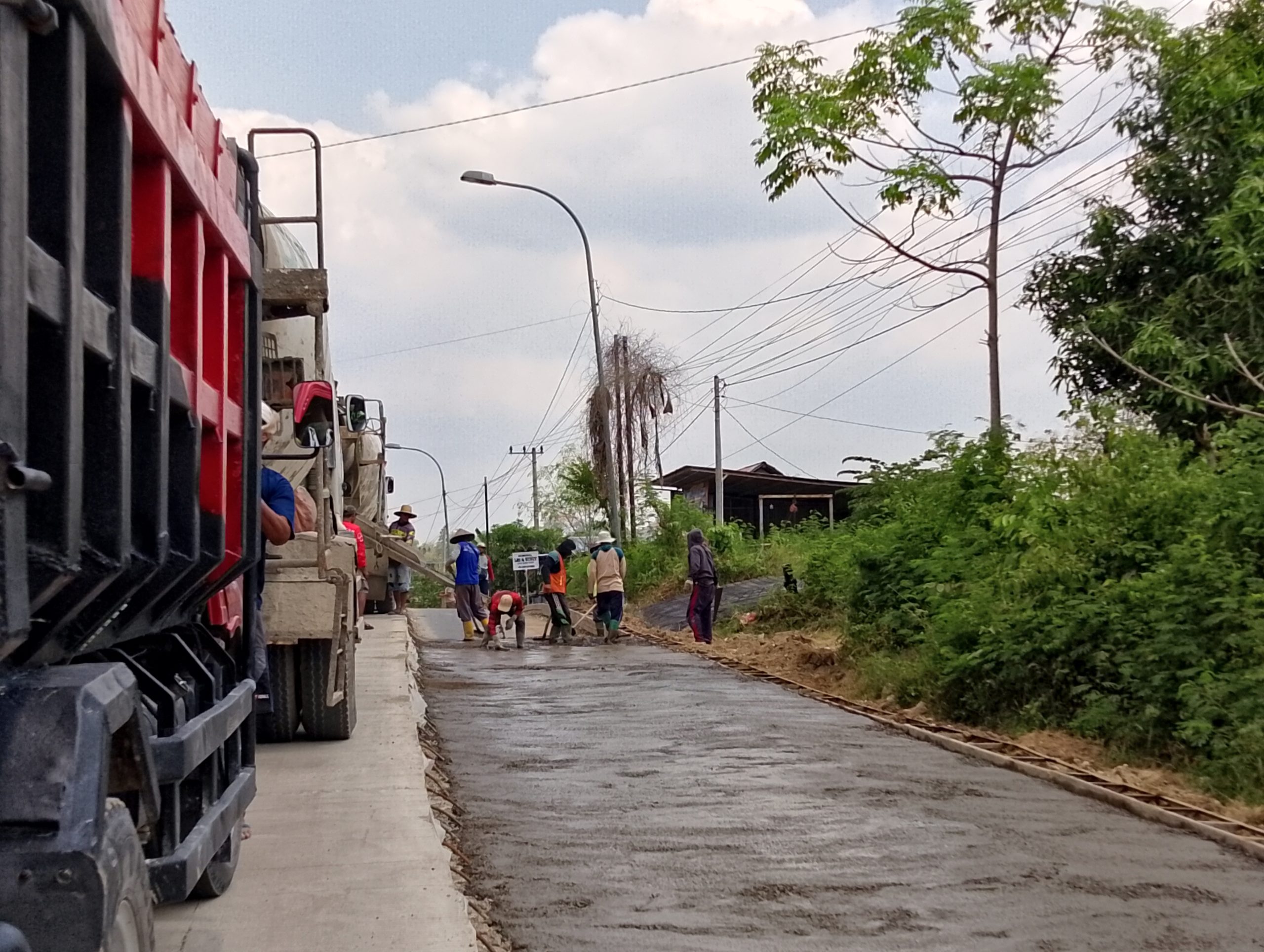 Sejumlah pekerja sedang menuntaskan pengecoran jalan di wilayah Desa Ngepon Kecamatan Jatirogo.