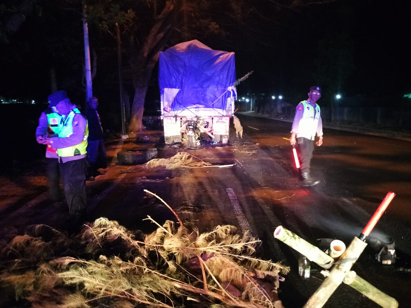 “Saat itu truk gandeng sedang diparkir oleh pengemudinya di tepi jalan sebelah selatan karena mengalami kerusakan mesin,” tambahnya.