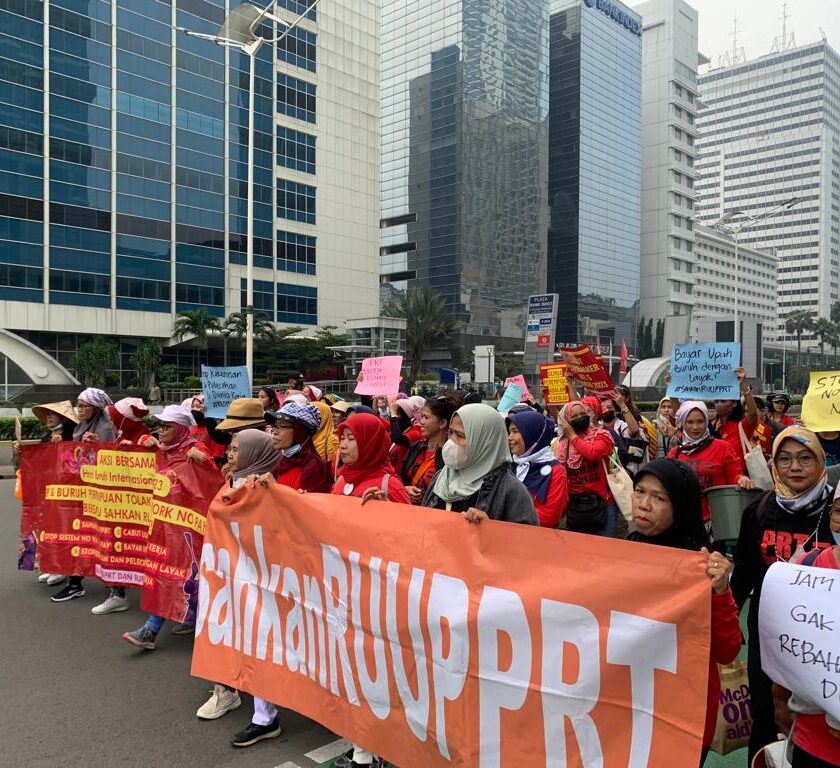 Tubannews.id – Para Pekerja Rumah Tangga (PRT) dan buruh perempuan melakukan aksi May Day, 1 Mei 2023 dengan melakukan aksi di Bundaran HI
