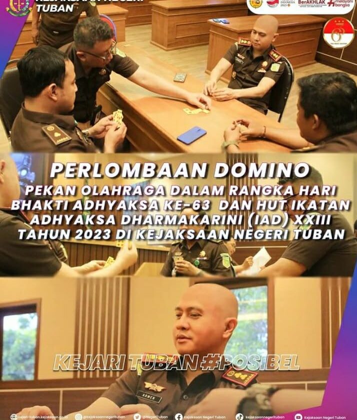 Tubannews.id-Beberapa hari yang lalu Kejaksaan Negeri (Kejari) Tuban mengunggah perlombaan domino melalui akun resmi instagramnya (IG) kejaksaannegerituban. Dalam unggahannya, terdapat foto para jaksa