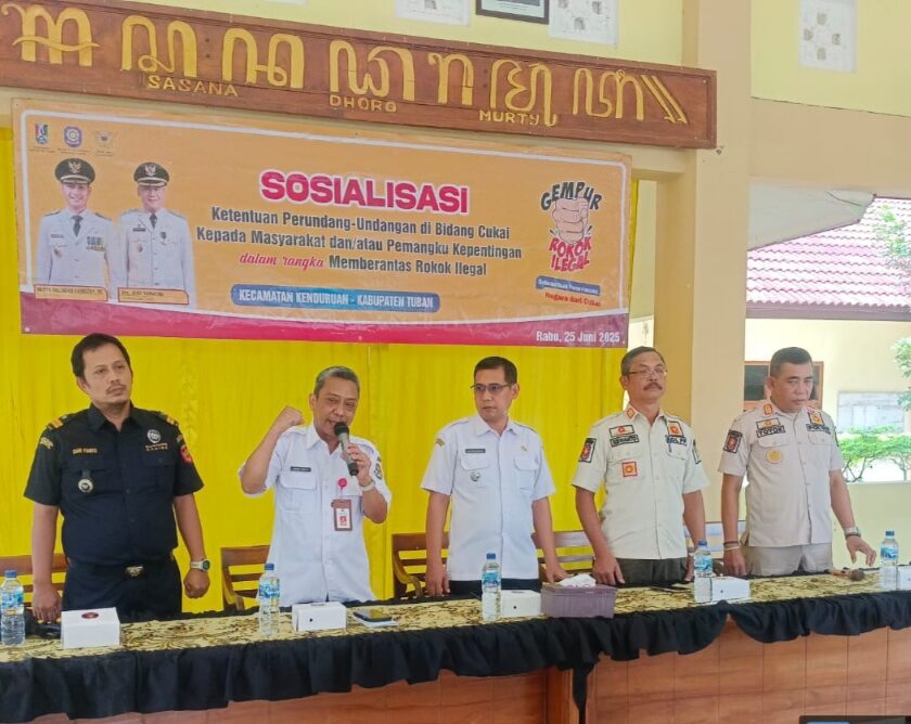 Tubannews.id – Kantor Wilayah Bea Cukai Jawa Timur I menggelar sosialisasi ketentuan peraturan perundang-undangan di bidang cukai dalam rangka pemberantasan rokok ilegal di wilayah